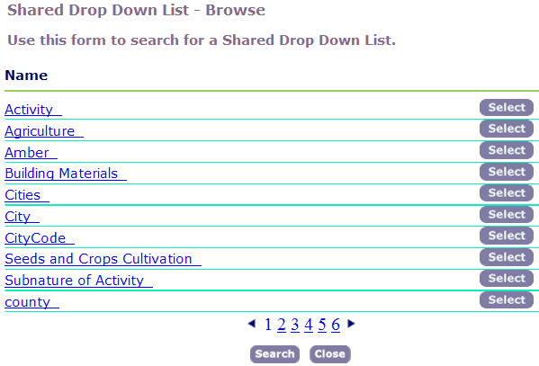 Civic Platform returns the Shared Drop Down List-Browse page.