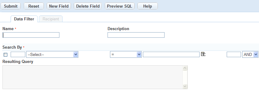 3. If you want to add a new field, enter the Logical Operator in the last field to determine how you want to combine the field-level filters, click the New Fieldbutton, and perform the following:
