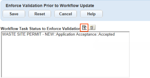 Civic Platform displays the Workflow Task Status to Enforce Validation screen.