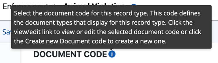 Settings for Citizen Access Document Code Indicate the document code set for the types of documents public users can upload and attach to record types in ACA.