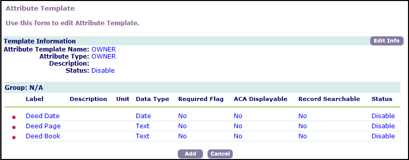 After you create a template, you might need to change the template description, status, or attributes. You can also add or edit any attributes defined for the template.