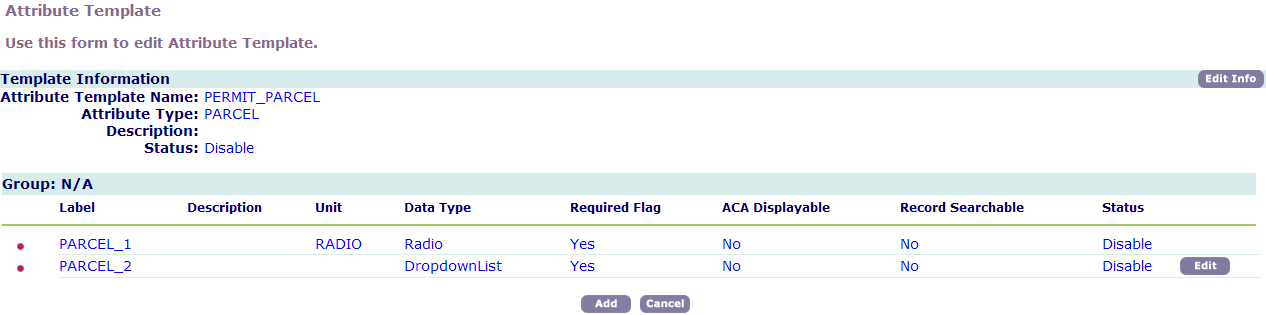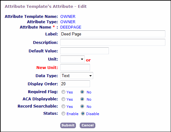 Civic Platform displays the Attribute Template’s Attribute—Edit page.