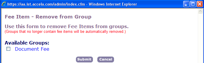 You can remove fee items from assigned groups. Civic Platform automatically deletes groups that do not have any fee items.