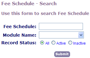 Enter any search criteria. You can leave these fields blank to return all the fee schedules.