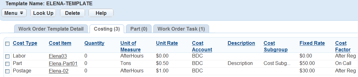 You create and maintain the costing information you associate with work orders and work order templates in the cost item definition portlet. For information on how to add cost items, see Managing Work Order Costing.