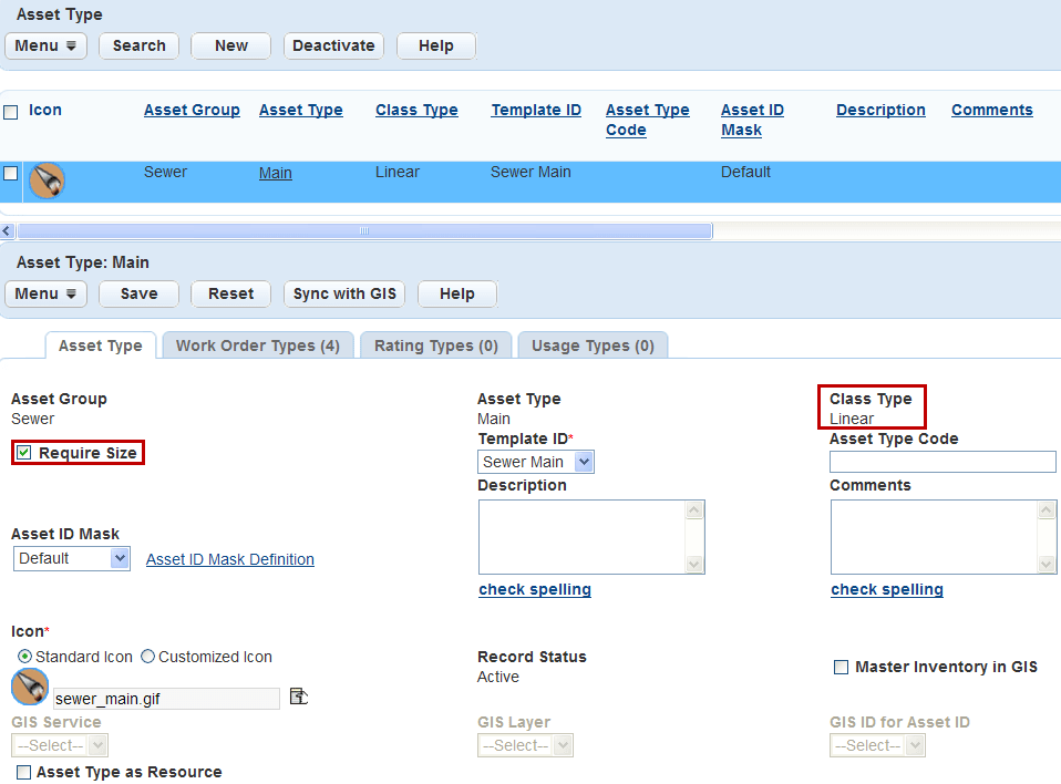 1. Find an asset type or create a new asset type for which you want to require the Asset Size field.