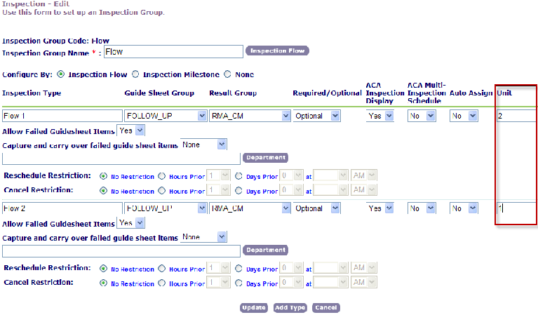 2. Specify a unit value for all the inspection types subject to automatic scheduling (Inspection Unit Values).