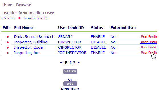 2. From the list of users, click the User Profile link.