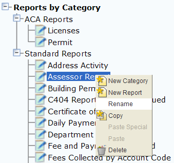 The ability to rename the report is available under any of the categories in the navigation tree. It is important to understand that renaming a report under one category, such as Reports by Name, renames the report under another, such as Reports by Category.