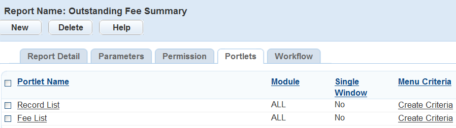 For reports associated with Civic Platform portlets, you can set criteria only for form portlets. The criteria option is not applicable to list or search portlets.