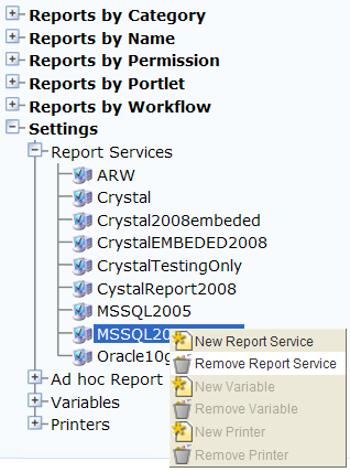 You can remove report services that are incorrect or that you no longer need. You must also remove the reports that you reference in the report service, or update them to use a different report service, before you can remove a report service. After you remove a report service it is no longer available within Report Manager when setting up reports.