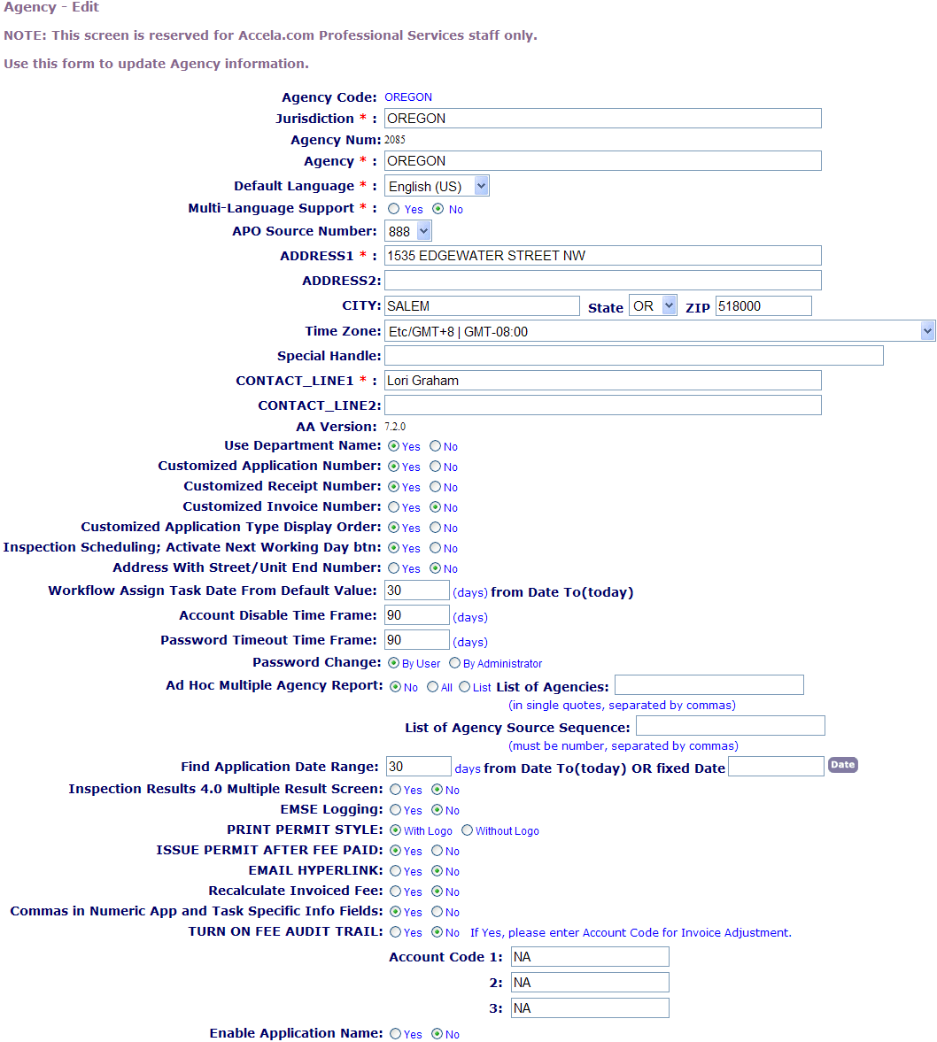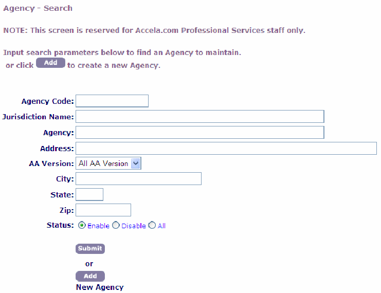 For more information on configuring the agency options, see the “Agencies and Functions” chapter in the Civic Platform On-premise Administrator Supplement.