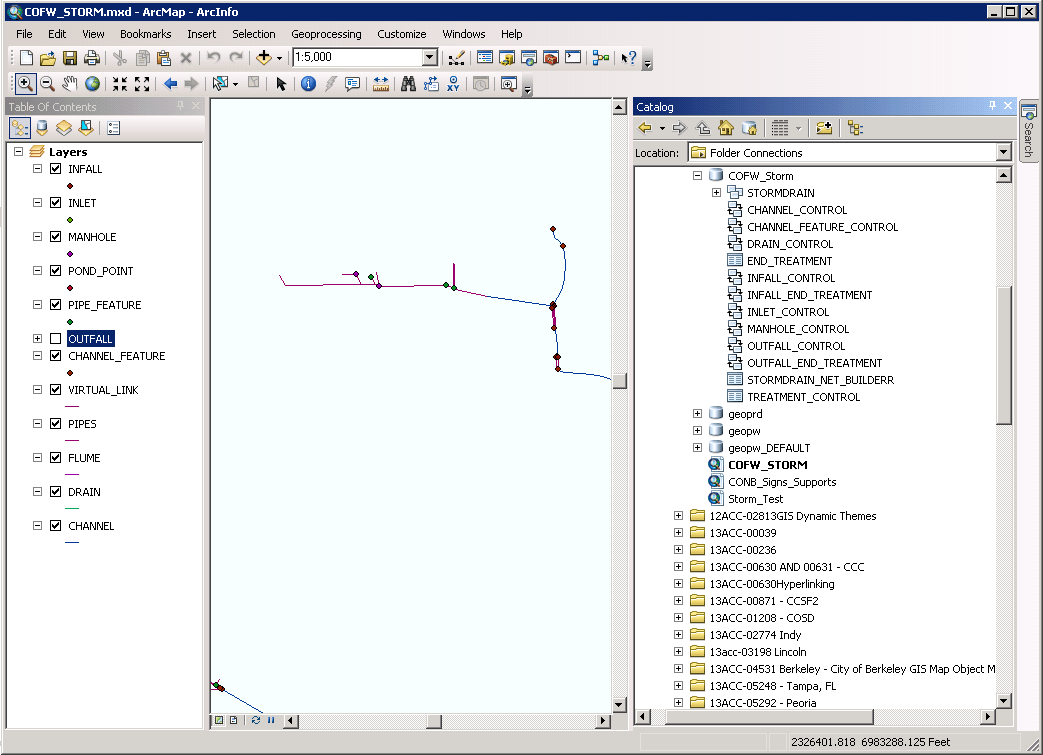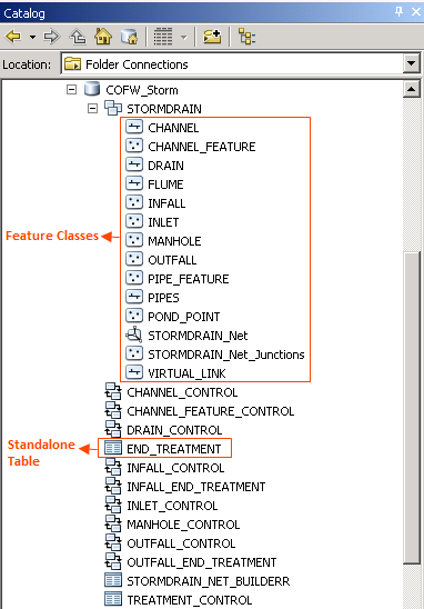 A feature class in the geodatabase (see Figure 1) is represented visually on the map as a layer and contains a collection of common features with the same spatial representation, such as points, lines, or polygons. A stand-alone table in the geodatabase provides descriptive information about features or contains a collection of features without spatial representation. Your agency can associate objects in one feature class with objects in another, or associate objects in one feature class with records in a table. However, you can only sync the relationships between the objects in a feature class and records in the related tables in the geodatabase to the parent and child hierarchy of assets in Civic Platform. The relationships between objects of different feature classes cannot be synced to Civic Platform.