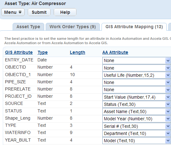 asset sync, click the GIS Attribute Mapping tab to map the GIS