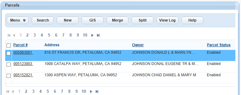 2. Click the link to the address, parcel, or owner that you want to edit.