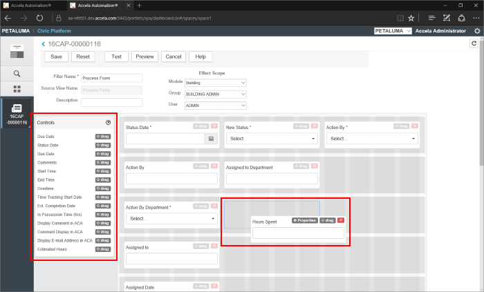 The new Workflow Designer is built on the Bootstrap 12-column grid system. This framework provides responsive output with easy-to-use snap to grid functionality. Users can select a field from the Controls box on the left and drag the field into the desired position on the grid. A dotted blue box will indicate where the field will snap into the grid. Once the field has been placed on the grid, the user can adjust the width accordingly.