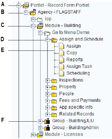 Civic Platform provides the Menu Navigation function to specify the list of items that appear in the Go To menu (Go To Menu). You use the Menu Navigation function to organize Go To menu items in a way that makes sense for a module or user group. You can use a Go To menu definition (Custom Menu Navigation Tree) as a template for another module or user group by coping the menu definition and making modifications to the copy.