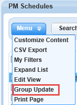 FID 8600 controls whether or not the Group Update menu choice and functionality is available for Preventative Maintenance Schedules, so it applies to all users in the group for which the FID is configured.
