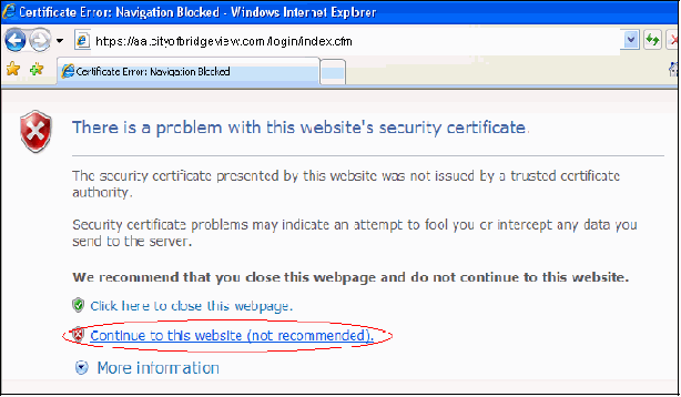 5. Close this browser session. Start a new browser session and log in to Civic Platform. Because you installed the security certificate, the problem should not persist. To eliminate other pop-ups, consider changing your Pop-up Blocker Settings.
