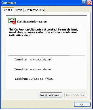 4. Click the Install Certificate button in the General tab of the Certificate window. After the secure certificate installation completes, click OK.