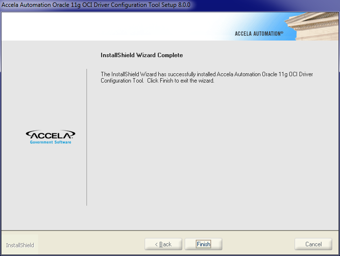 If some Civic Platform services are running, the installer stops the services, installs the OCI driver configuration tool, and then starts the services again when the installation is complete.