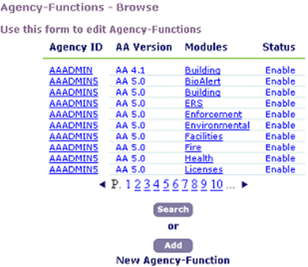 - On the Agency-Functions - Browse page, click the link for the agency,