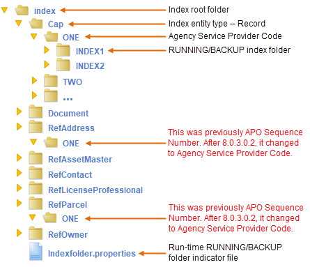 Effective in 8.0.3.0.2, the sub-folders in RefAddress and RefParcel (previously named according to the APO source sequence numbers) are renamed to match the agency SERV_PROV_CODE.