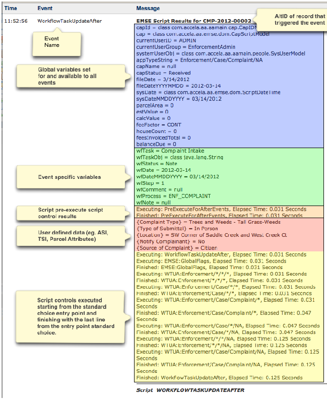 Several kinds of scripts, such as batch job scripts and scripts that EMSE events trigger, can populate the debug tool. For example, when submit an application, you trigger the
