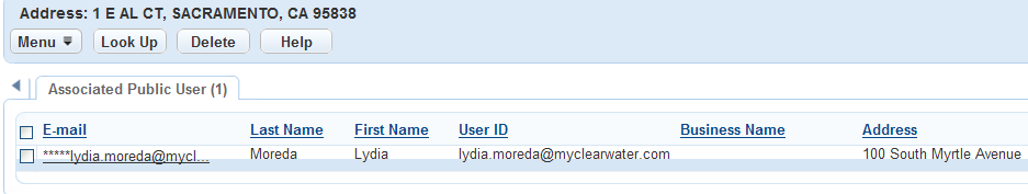 Once you have created addresses, you can use the Associated Public User tab to associate one or more public users to an address, or to disassociate one or more public users from an address.