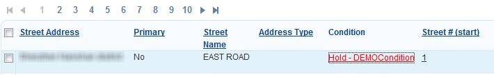 If a record contains one or more active conditions, the Condition column in the record list portlet displays the condition with the highest severity. You can click the condition link to view the details of the record conditions.