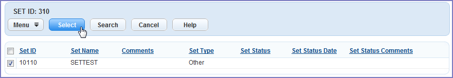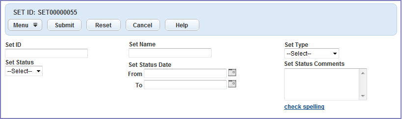 1. Access the Set details portlet either by clicking the Set link in the Main Links section at the top of your console or by clicking the Set tab on the record detail portlet.