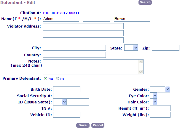 Complete the form with available data (see Citation Defendant Fields for field definitions).