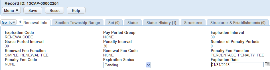 7. Enter data as available. For field definitions, see Renewal Information Fields.