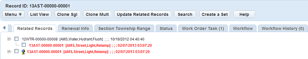 The relationship of a work order is determined when a work order or many work orders are copied. The source or initial work order is the parent and the target work order is the child. When more than one work order is copied from a source parent, this creates the sibling relationship. To view the work orders, select the parent work order, then select the related work orders record tab. From the list all child work orders can be viewed along with the parent. To activate a child work order, select the desired work order from the list. In order to create a parent/child/sibling relationship between work orders, you need to copy data from at least one existing (parent) work order to another (child/sibling) work order.
