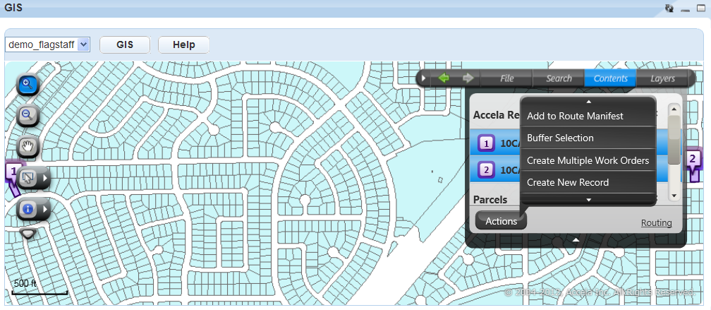 With the V360 user interface, Accela Silverlight GIS provides a geographic view of all land-use, zoning, and infrastructure information associated with agency records, including parcels, permits, inspections, plans, assets, work orders, and service requests.