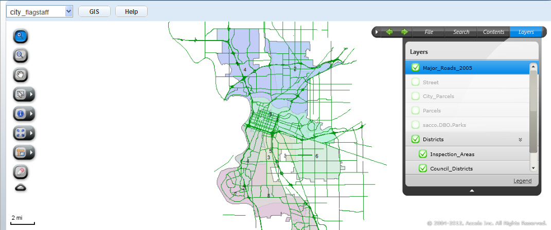 Use the map viewer table of contents to configure the map service and map layers that display.