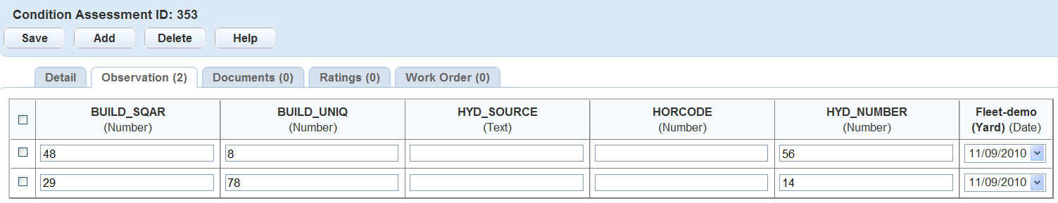 Most agencies pre-define assessment observation formats to accommodate specific assessment types and specific attributes. The inspector can then use these formats as a guideline when performing an assessment. For example, when an inspector assesses a vehicle, he inspects everything with great detail. Do the headlights and taillights function properly? Are seat belt latches in good condition? Are the windshields free of cracks and chips? Are the rear view mirrors intact? A pre-defined observation format serves as a checklist for the inspector, and his observation results help determine what needs repair. Civic Platform can then generate work orders for needed repairs.