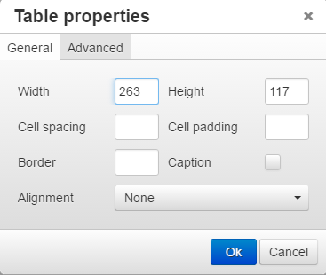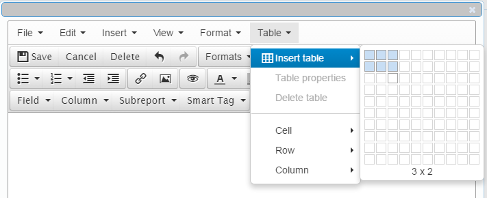3. To see the table properties, select the table on the form designer, and select Table > Table properties.