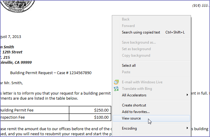 You can use tables in a form to display data in a columnar format. You can also use tables to regulate where on a page that you want form elements to appear. For example, if you want to create letterhead for a letter that includes your agency logo on the left and your agency name and address on the right, you can use a table to align these elements side by side.