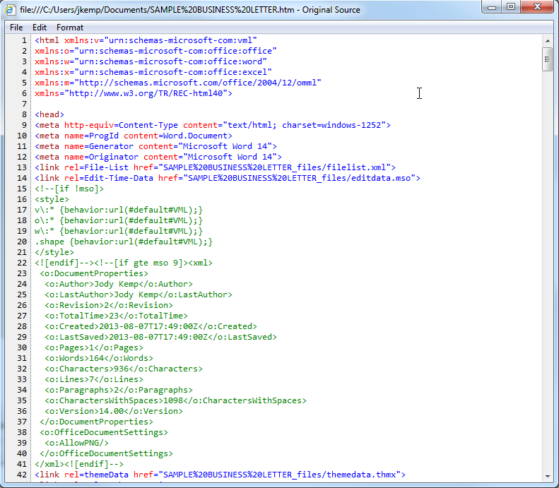 6. Locate the source document you want to copy, such as a XML or HTM file.