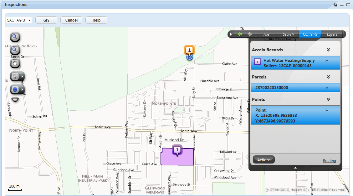 You must associate districts with both inspections and inspectors to automatically schedule inspections. You can manually assign the districts to inspections. You can also assign districts by selecting areas in Accela GIS. See your agency administrator for information on how to associate districts with inspections using Accela GIS and on how to set up an inspector profile.