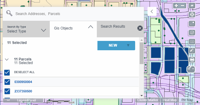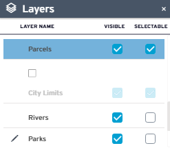 When the map opens, use the zoom, pan, or search bar to locate the parcels to add to the set.Note: Use the Layers widget to make sure the Parcels layer is selectable. If the Parcels layer is disabled, make sure to zoom out to a level where the parcels are visible: