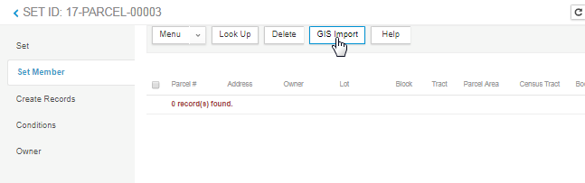 Civic Platform back-office users can use GIS Import to locate parcels on a map and add them to a set.