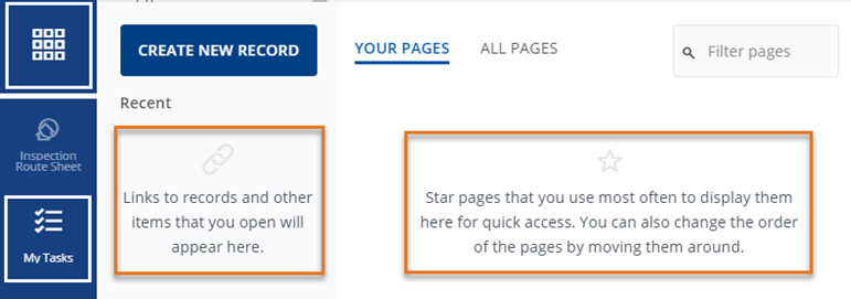 This area defaults to the Your Pages view, which contains a list of the pages bookmarked as favorite pages for the user. This view only shows the tooltip until pages are starred on the All Pages tab.