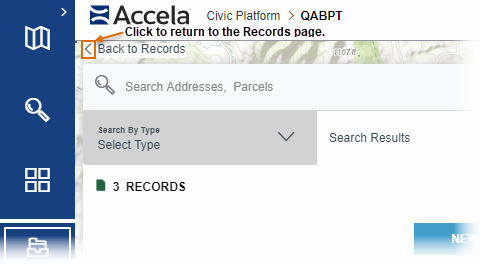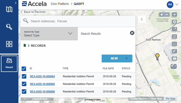 In this example we are searching for Records. You can also search for inspections and GIS Features. To plot records on the map: